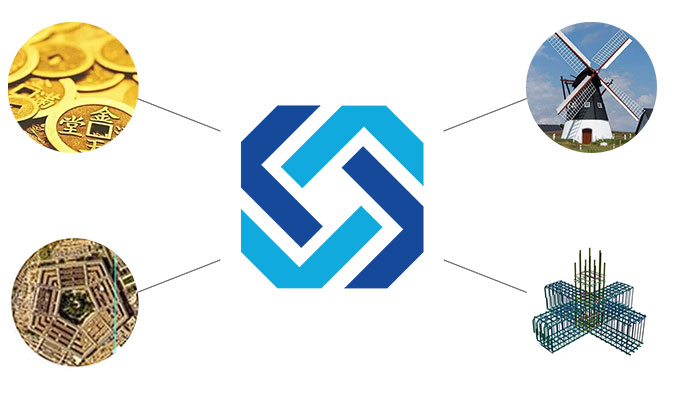 标志的整体形象似车轮、像风车、如钱币,象征着企业顺风顺水、不断前进、财源滚滚。